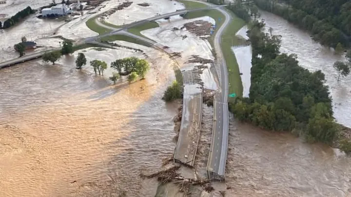 The photos above tell a tragic tale set in the Appalachian region in a small town in Northeast Tennessee. The photo on the left was taken (by me) just shy of two weeks prior to the image on the right. The river is called Nolichucky and it runs for miles through the mountains and lowlands, cutting a snake-like path along the way and toppling over a dam bearing its name just northeast of Greeneville, Tennessee. The river could not keep up with the rainfall and overflow, resulting in the river leaving its banks and destroying everything in its path. The broken road is east & westbound I-26 which traverses the mountains through Asheville, North Carolina southward to South Carolina. The power of over 30 feet in depth and width of excess water did that - this stretch of road, which also goes east through several cities to the TN/VA state line, is only 20 years old.